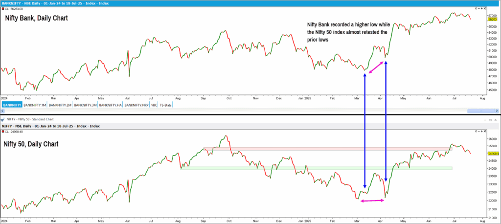 We had highlighted in the previous update that the Nifty 50 index has to break out of the zone marked by 23,900-24,100 on the lower side and 25,200-25,400 on the higher side for a decisive movement. Though the index managed to poke above the upper end of the range, this breakout was short-lived and the price has retraced back into the prior range.