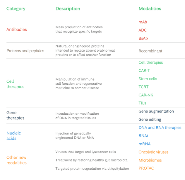 New modalities are a broad umbrella that includes innovative approaches to developing and delivering drugs. You might remember the mRNA-based Covid vaccine that was the topic of much discussion. More recently, GLP-1 weight-loss medications are all the rage. Both fall under the ambit of new modalities.